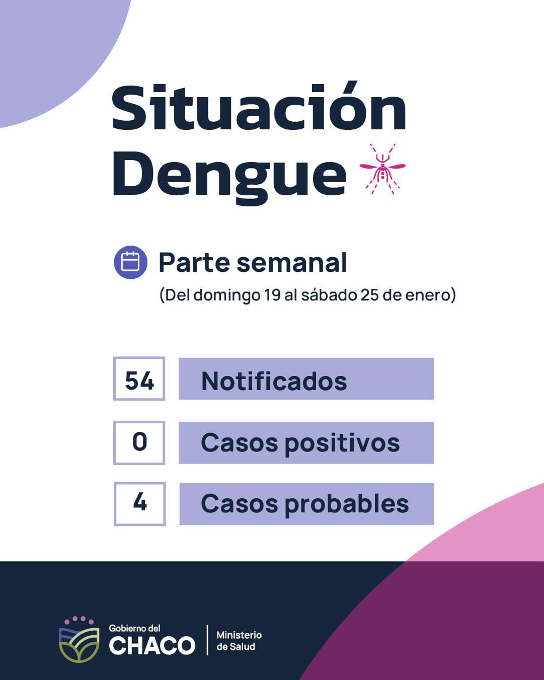 _El Ministerio de Salud del Chaco brinda el parte de Dengue correspondiente a la Semana Epidemiológica, del 19 al 25 de enero de 2025._