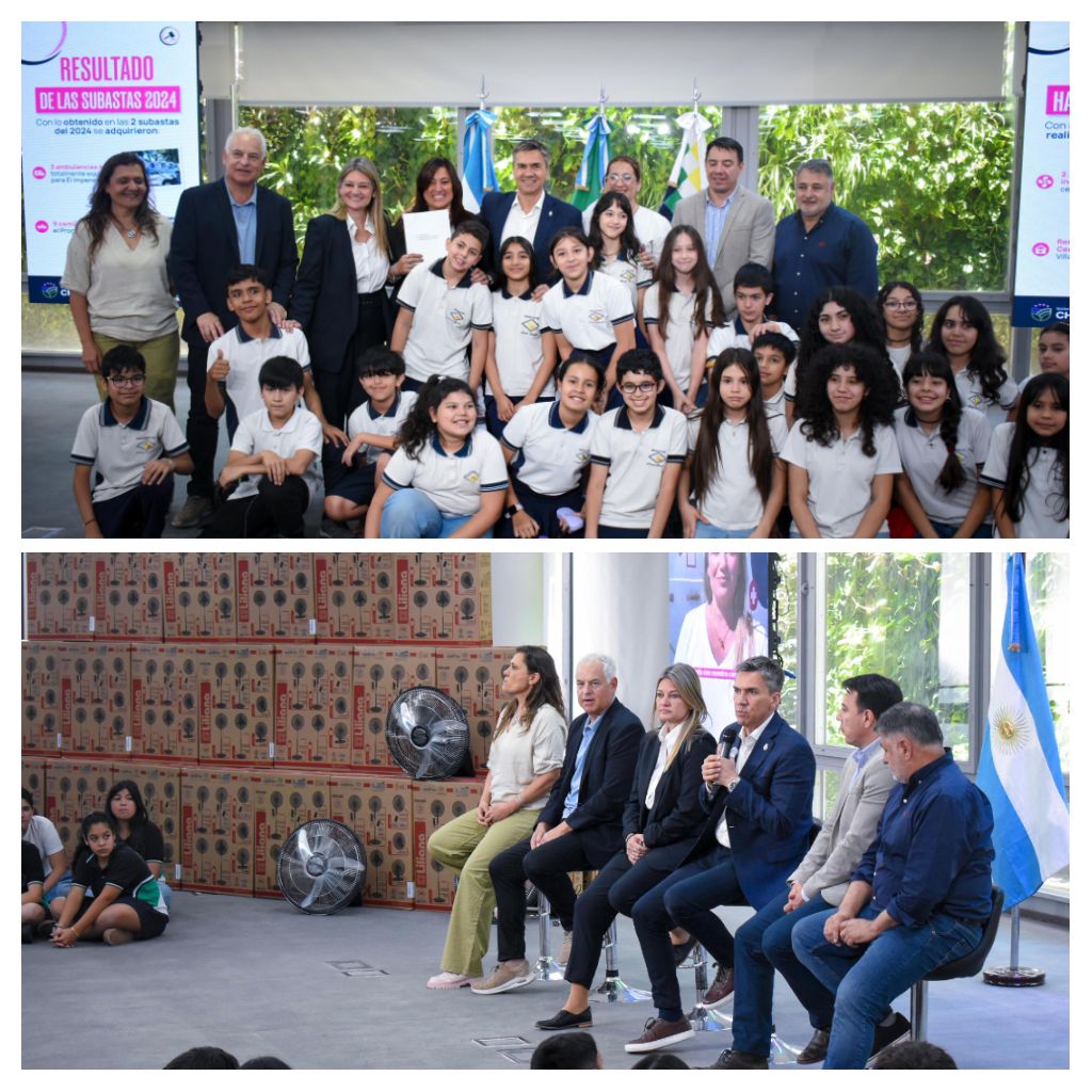 En ese marco detalló que se compraron para el Sistema Sanitario Provincial, ambulancias 0 Km 4x4, se adquirieron vehículos para que “la ayuda social no llegue con intermediarios, sino que llegue directamente a la gente”. Además, puntualizó que se compraron camionetas para todo el territorio provincial, para el área de Desarrollo Humano. “Así seguimos avanzando, para que puedan llegar a instituciones educativas públicas de nuestra provincia, en esta oportunidad, 2000 ventiladores industriales, que se van a distribuir en diferentes escuelas de todo el territorio provincial”, afirmó Zdero, quien encabezó la entrega junto a los directivos de instituciones escolares.