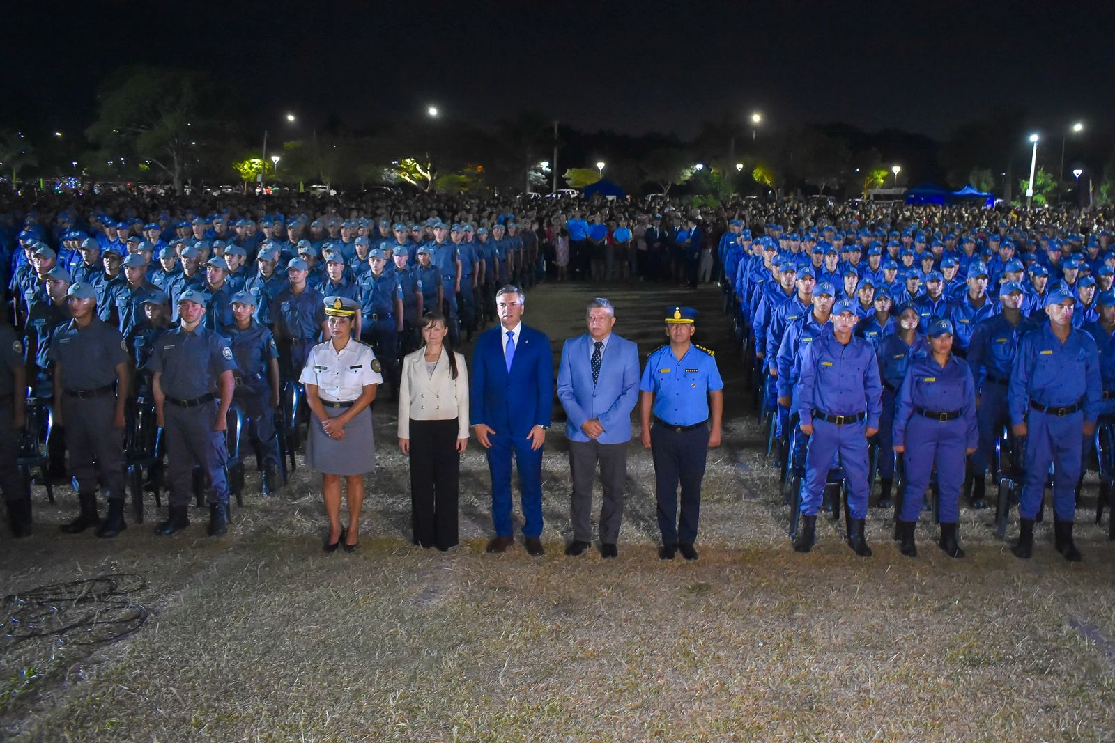 *Este lunes por la noche, el gobernador Leandro Zdero junto a la vicegobernadora, Silvana Schneider, acompañó el acto de egreso de 198 alumnos del V° Curso de Formación para Agentes Penitenciarios y 391 alumnos del XL° Curso de Formación para Agentes de Policía, que se realizó en el Parque de la Democracia. En el marco estratégico del Plan de Seguridad, el primer mandatario provincial anunció que este viernes se incorporarán 520 nuevos agentes oficiales y suboficiales y 220 nuevos penitenciarios.*