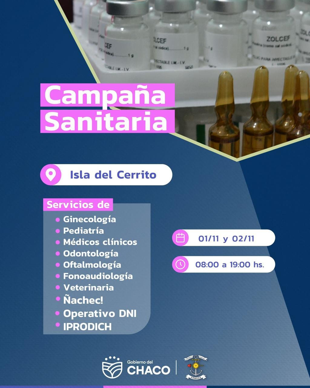 El Gobierno del Chaco junto a la Armada Argentina estarán mañana viernes 1 y sábado 2 de Noviembre, en la Isla del Cerrito, llevando a cabo la Campaña Sanitaria con prestaciones de Servicios