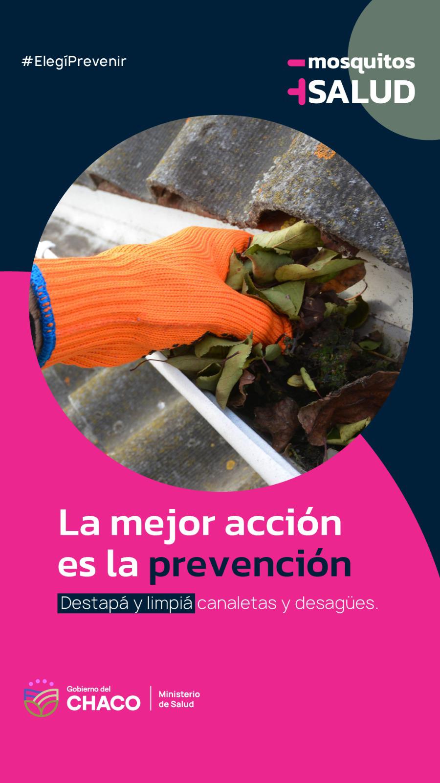 *La mejor acción es la prevención* _Recordá que los cuidados contra las Enfermedades Transmitidas por Mosquitos (ETM) comienzan en casa: destapá y limpiá canaletas y desagües._ “Tenemos que hacer el recorrido en nuestras casas y dar vuelta los objetos inservibles, tapar los recipientes donde se junta agua, limpiar las canaletas, los bebederos de los animales, los floreros, realizar la limpieza que ya sabemos y que hay que repetirla de forma habitual”, recordó la subsecretaria de Promoción de la Salud y Prevención de Enfermedades, Dra. Antonieta Cayré.