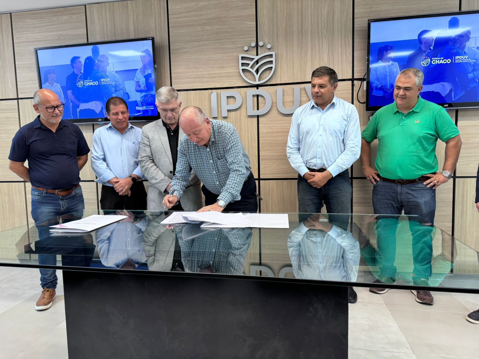En un nuevo paso hacia la consolidación del derecho de un techo propio, el Instituto Provincial de Desarrollo Urbano y Vivienda (IPDUV), junto a la Sub Unidad de Obras y Programas Especiales (SUOPE), firmaron un convenio de colaboración con los municipios de Presidencia Roca y Laguna Limpia. Del acto participaron el presidente del IPDUV, Fernando Berecoechea; el vocal, Diego Gutiérrez, el jefe ejecutivo de la SUOPE, Jorge Víctor Pilar; y los intendentes Gustavo Javier Martínez (Presidencia Roca) y Juan de la Cruz Riquelme (Laguna Limpia).