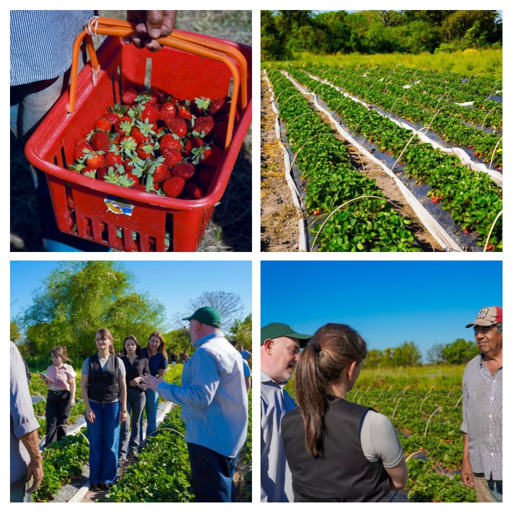 Además, estuvo ayer en el campo del productor Faustino Rivas, donde se cultivan más de 3.000 plantines de frutilla con acompañamiento del Ministerio de Producción. Allí, elogió la calidad de la producción local y valoró el esfuerzo de los trabajadores rurales. “Realmente estoy muy orgullosa de la calidad de nuestra frutilla chaqueña. Probamos la producción de don Rivas y es exquisita, de una madurez increíble. Agradecemos la resiliencia de nuestros productores, que siempre van para adelante”, señaló.