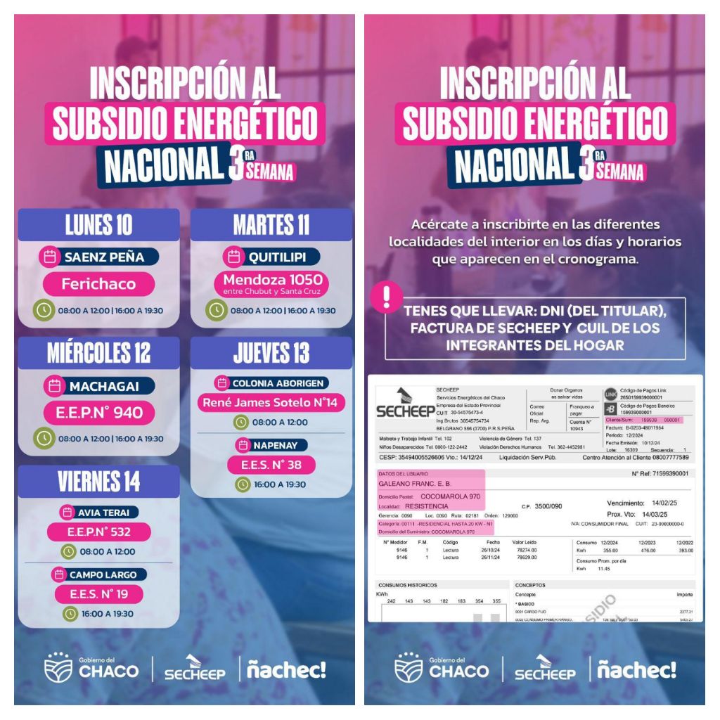 Del lunes 10/02 al viernes 14/02, SECHEEP junto a �?achec, e IPRODICH continuamos visitando el interior del Chaco para asesorarte sobre el Subsidio Nacional de Energía y brindarte toda la info sobre el Descuento de Verano implementado por el Gobierno Provincial.