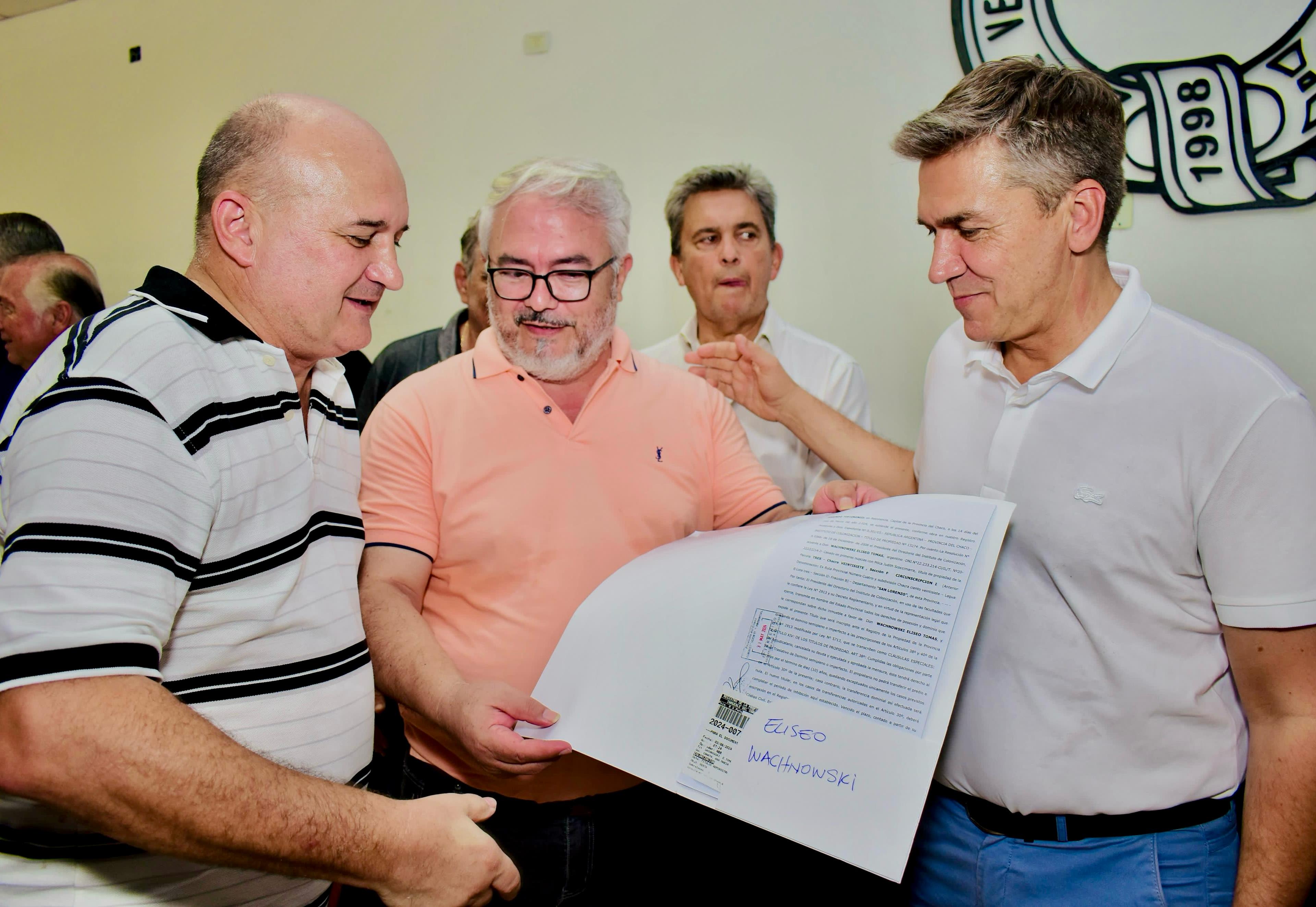 *El gobernador, Leandro Zdero, junto al ministro de la Producci�n y el Desarrollo Econ�mico Sostenible, V�ctor Zimmermann y el vocal de Tierras Fiscales, Eduardo Feldman, entregaron a productores, t�tulos de tierras fiscales y financiamiento a 10 beneficiarios de los Planes de Manejo y Conservaci�n a trav�s del Fondo Nacional para el Enriquecimiento y Conservaci�n de los Bosques Nativos.*