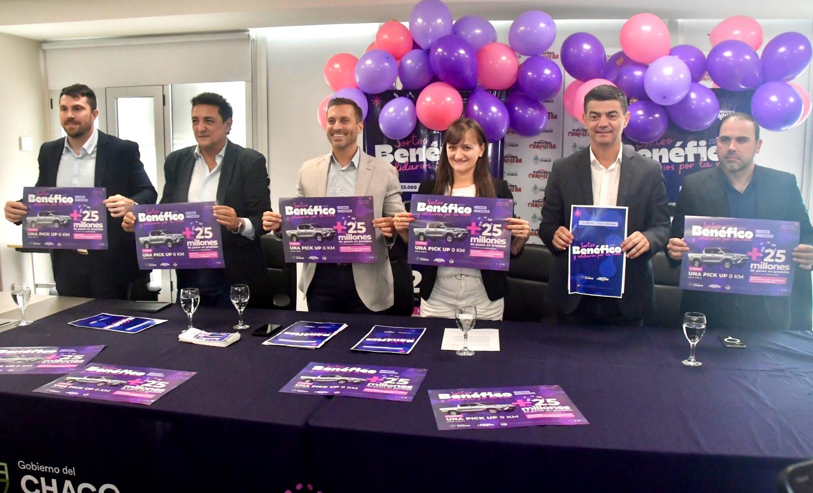 *LOTERÍA CHAQUEÑA LANZÓ UNA NUEVA EDICIÓN DEL “SORTEO BENÉFICO Y SOLIDARIO POR LA VIDA”* *El bono tendrá un valor de $3.000 y se sorteará el 3 de mayo. Los premios van desde un vehículo 0 kilómetro a dinero en efectivo por más de 25 millones de pesos. “La idea acompañar a todos los chaqueños que lo necesiten y a las instituciones sociales”, dijo la vicegobernadora. También habrá un sorteo estímulo para comparadores.* La vicegobernadora Silvana Schneider y el presidente de Lotería Chaqueña, Lucas Apud Masin, encabezaron este jueves el lanzamiento del tradicional “Sorteo Benéfico y Solidario por la Vida”, destinado a instituciones sin fines de lucro y personas que necesiten costear tratamientos médicos. “Nos enorgullece lanzar este sorteo en reconocimiento al gran trabajo que realizan estas instituciones dentro del entramado social de nuestra provincia”, subrayó la vicegobernadora. El sorteo se llevará a cabo el próximo 3 de mayo y el valor de cada cartón será de $3.000, en tanto que el premio mayor será una Pick Up 0 kilómetro (doble cabina) y más de 25 millones de pesos. El beneficio para las entidades sin fines de lucro será del 70% del valor de venta de cada bono y en el caso de las personas que requieran tratamiento médico especial, será de un 90 por ciento, un 10 por ciento más que en la última edición del Sorteo. “No solo se trata de beneficios para entidades y asociaciones, sino que hay una mirada especial también para aquellas personas que atraviesan tratamientos médicos. La idea es llegar a toda la provincia, a lo largo y ancho, y acompañar a todos los chaqueños que lo necesiten y a las instituciones sociales”, apuntó Schneider. Del lanzamiento participaron también el gerente Comercial de Lotería Chaqueña, Gustavo Mauro Kefalidis; el gerente general Horacio Ybarra y el vocal Juan Chaussivert. *”Una herramienta solidaria a disposición de la sociedad”* “Se trata de una herramienta solidaria que desde Lotería ponemos a disposición de la sociedad, sabiendo que es de gran alcance y que llega a todos los rincones de la provincia”, expresó Apud Masin, presidente de Lotería Chaqueña. Y explicó que bajo los lineamientos del gobernador se diagramó un esquema para que las instituciones puedan acceder a esta herramienta en forma permanente, sin ningún tipo de distinción, sean clubes, asociaciones, fundaciones. “Seguiremos potenciando esta iniciativa”, dijo el presidente y destacó el incremento de un 10 por ciento –en relación al año pasado- en el monto a recaudar por cada bono, para personas que atraviesen tratamiento médico. Los interesados en participar de esta propuesta solidaria, sean entidades sin fines de lucro o personas que necesiten costear tratamientos médicos, podrán comunicarse con Lotería Chaqueña vía telefónica o por las redes sociales y acceder a los requisitos e información de interés. *Sorteo Estímulo para Compradores* El gerente comercial, Gustavo Kefalidis, informó que el 26 de abril se realizará el Sorteo Estímulo para Compradores, vía urna, con seis premios de medio millón de pesos. “Este año el presidente de Lotería nos pidió tener una mirada social mucho más profunda en especial para las personas que están atravesando un problema de salud y en esa dirección es que se aumentó el porcentaje de devolución a un 90%”, indicó. Destacó que se elevó el monto de los premios y precisó que además del vehículo, se sortearán más de 25 millones de pesos en premios de $10.000.000, $7.000.000, $5.000.000, $3.000.000 y $1.000.000.