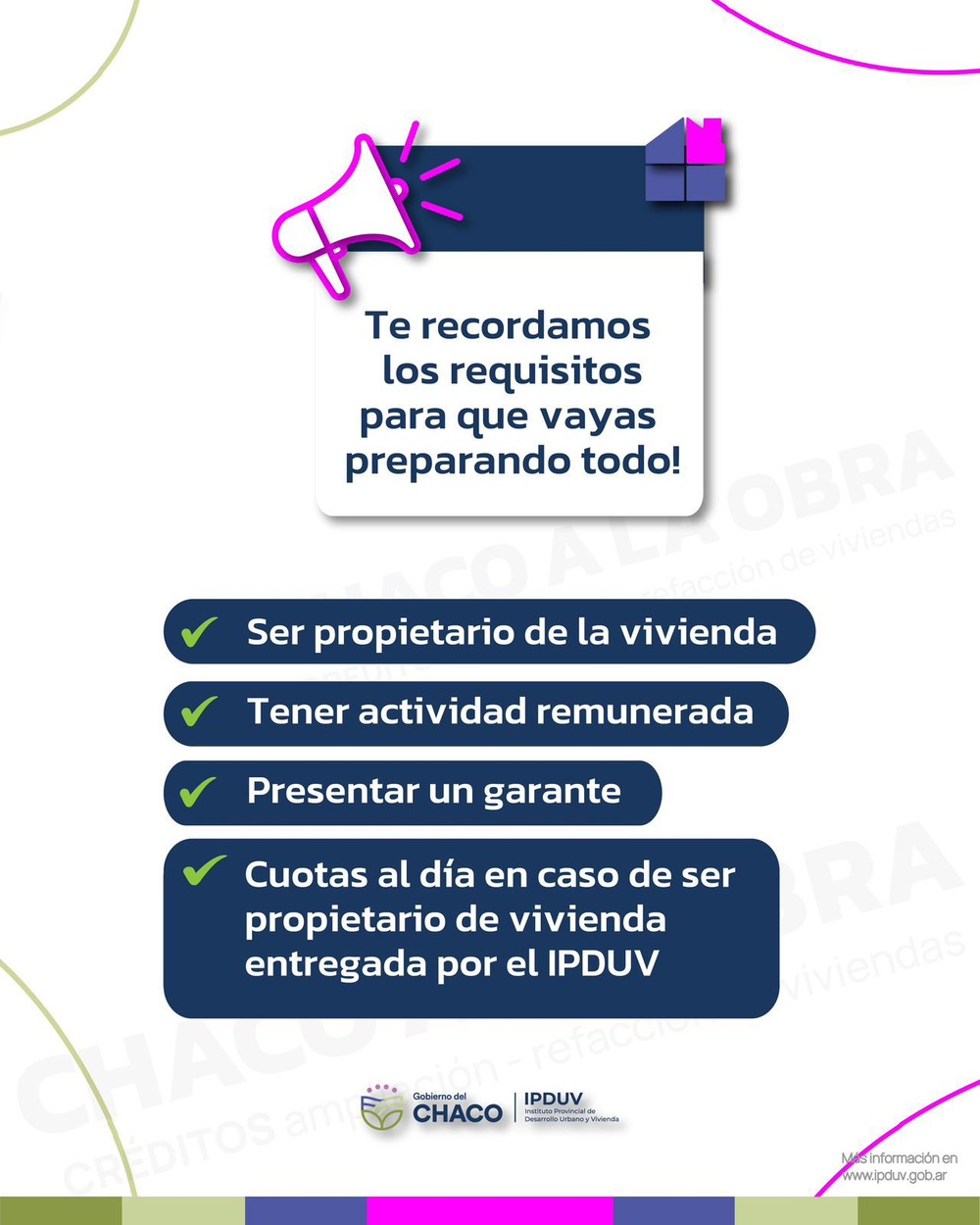 ?CHACO A LA OBRA?: ESTE LUNES 4, SE ABRE LA INSCRIPCI�N PARA LA L�NEA DE CR�DITO DEL IPDUV