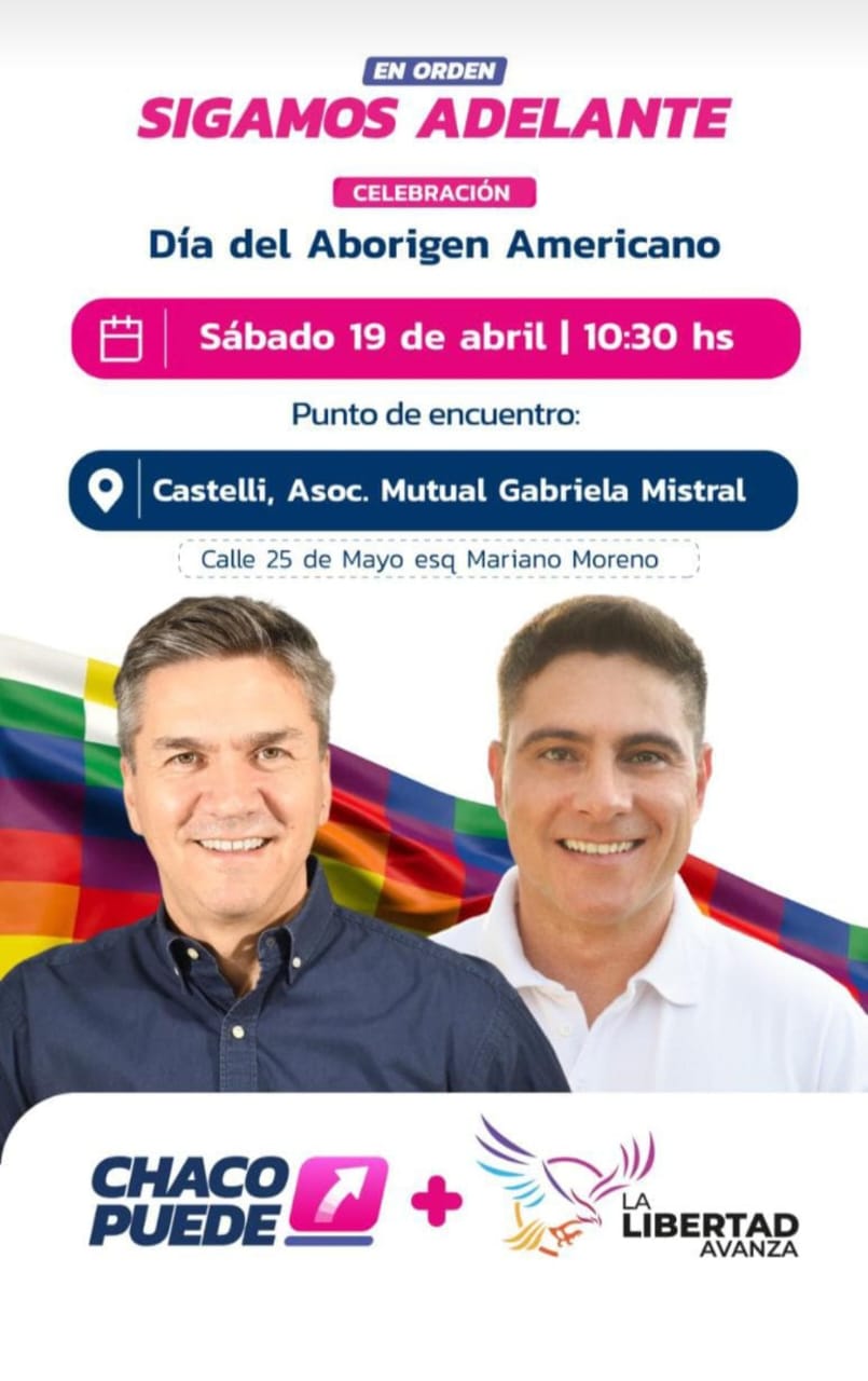 LA CELEBRACI�?N SE REALIZARA , ESTE SABADO 19 DE ABRIL | 10:30 HS . PUNTO DE ENCUENTRO .CASTELLI, ASOC. MUTUAL GABRIELA MISTRAL
