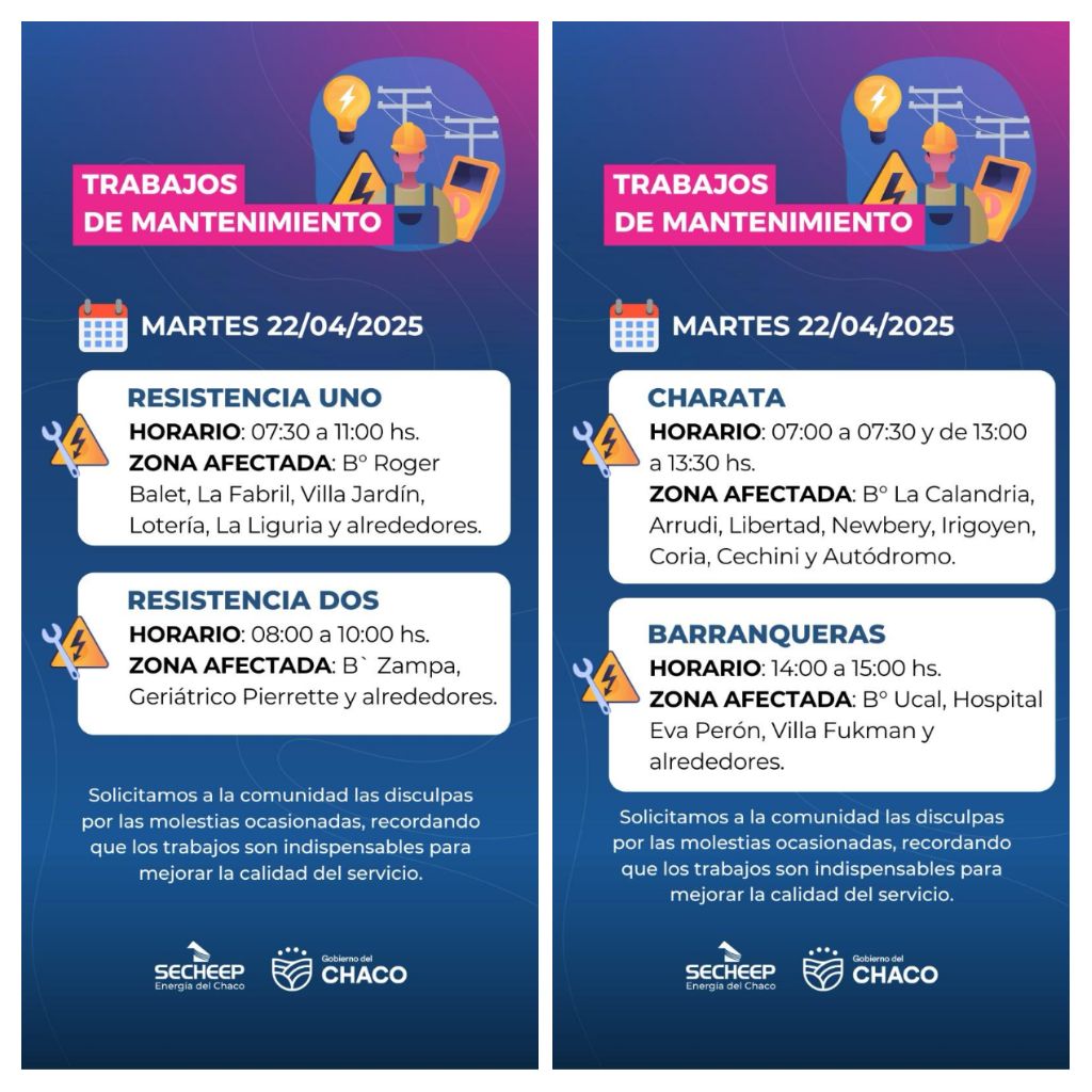 ESTARA REALIZANDO TRABAJOS DE MANTENIMIENTO : ESTE DIA MARTES 22/04/2025