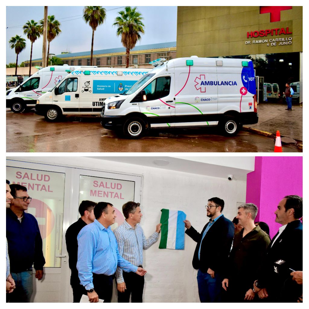 _En el marco de la inauguración, junto al Ministro de Salud, entregaron una ambulancia para Sáenz Peña (equipada para UTI) y otra para Avia Terai, además de equipamiento para las áreas Neonatología y Pediatría del nosocomio y un ecógrafo portátil._