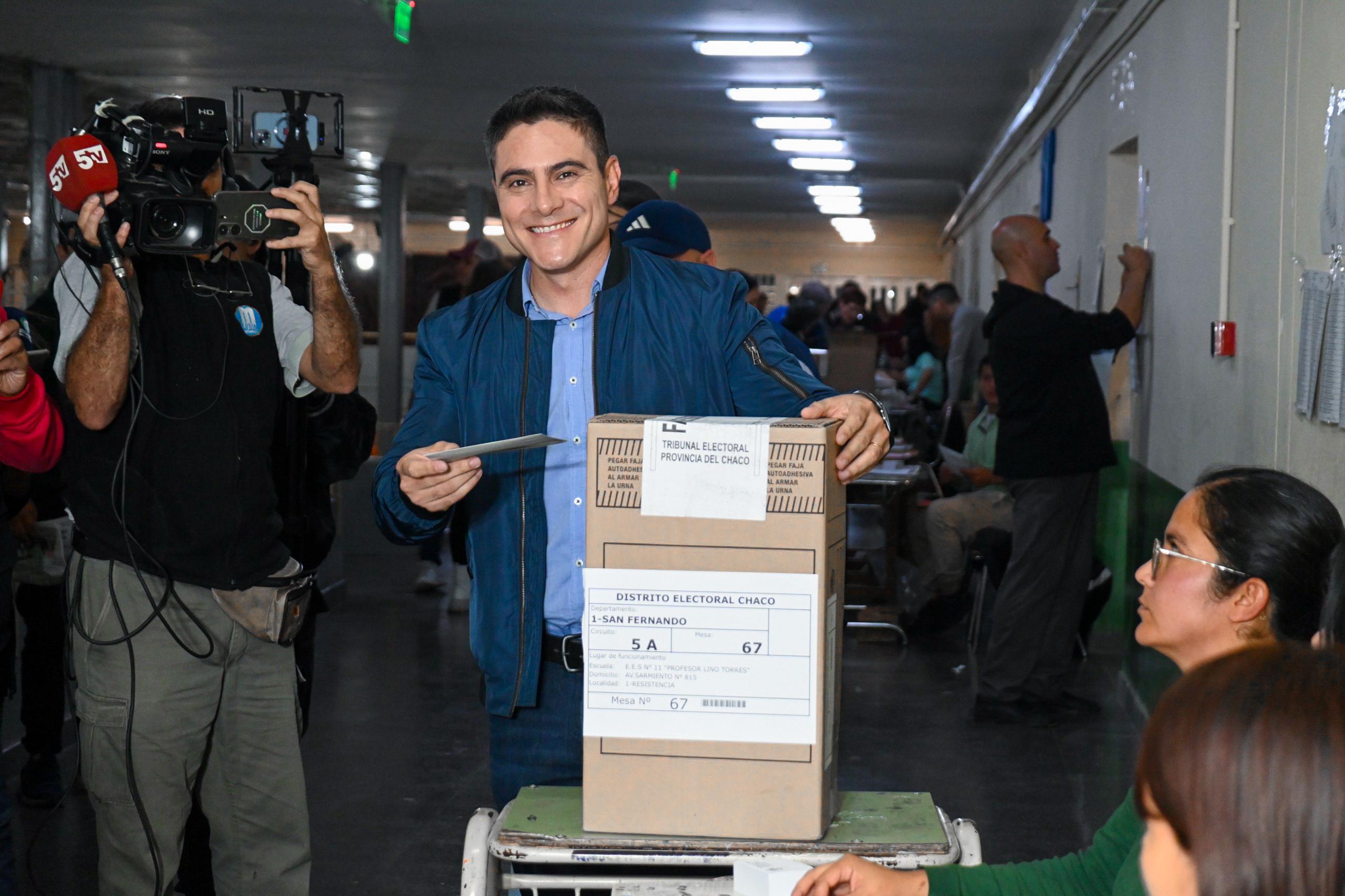 El primer candidato a diputado por “Chaco Puede + La Libertad Avanza”, Julio Ferro, votó durante las primeras horas de este domingo en la E.E.S Nº11 “Prof Lino Torres” de la ciudad de Resistencia.