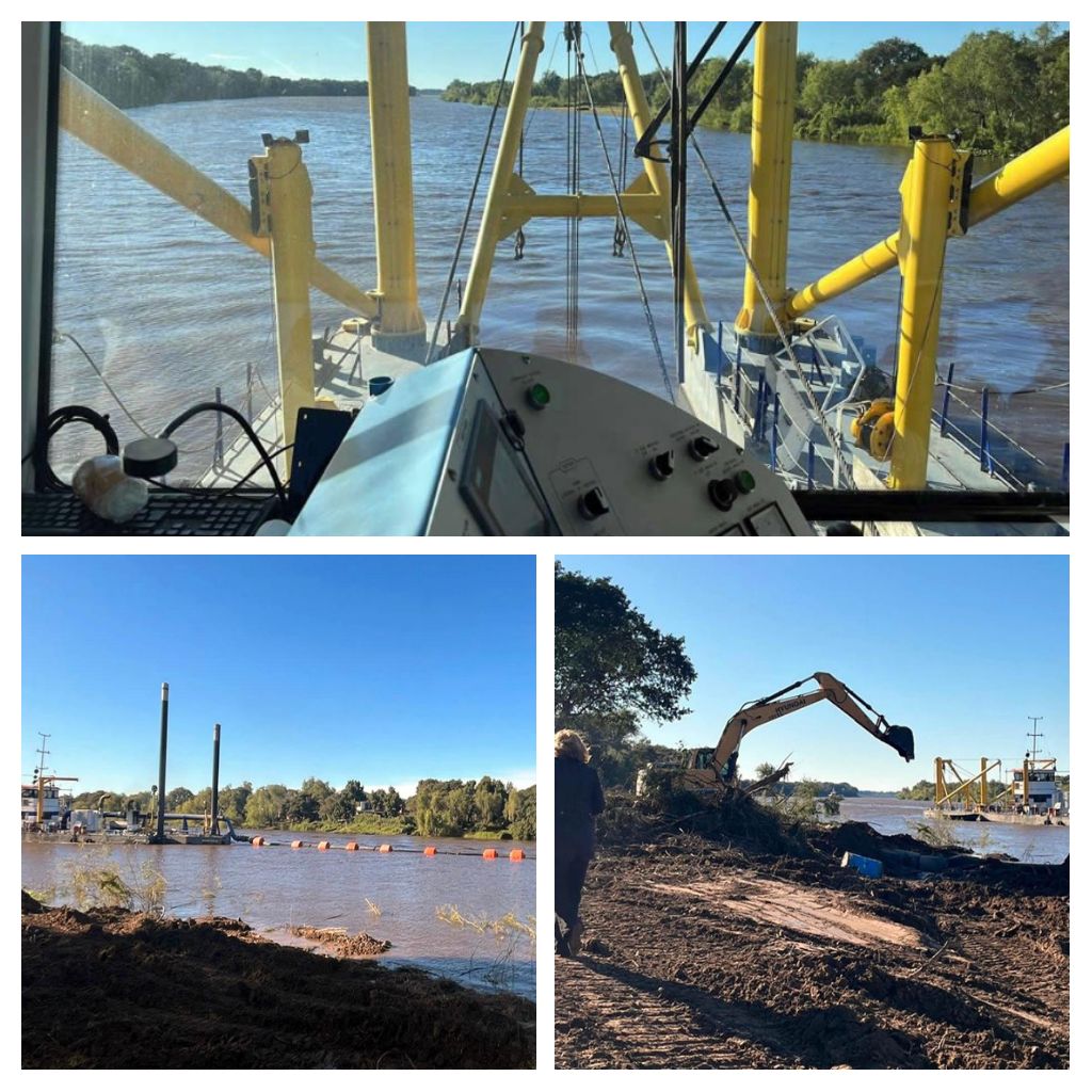 *Mediante una articulación público-privada, el Gobierno del Chaco y la empresa YPF desarrollan la etapa final del dragado en el acceso al muelle de descarga que la empresa petrolera tiene en el Riacho Barranqueras.*