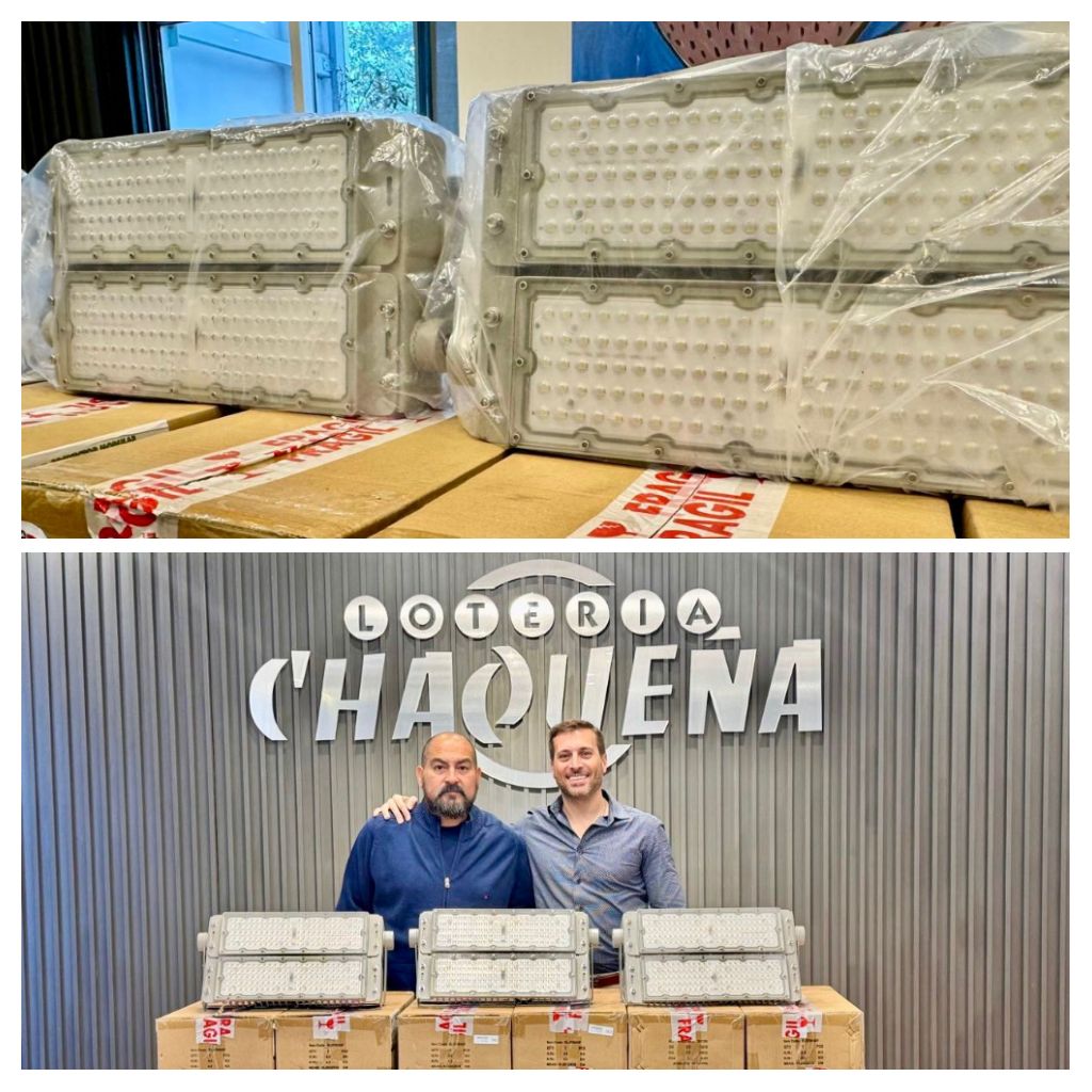 Con el objetivo de seguir acompañando el desarrollo deportivo en toda la provincia, el presidente de Lotería Chaqueña, Lucas Apud Masín, entregó reflectores LED al Club Juventud de El Sauzalito, una institución emblemática del norte chaqueño